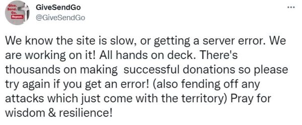 I would accept that video as fact. If they say “they’ve got it”, they’ve got it. GiveSendGo is going to be swamped for a short while. Request your donation from GoFundMe and send it to GiveSendGo when you get the chance.