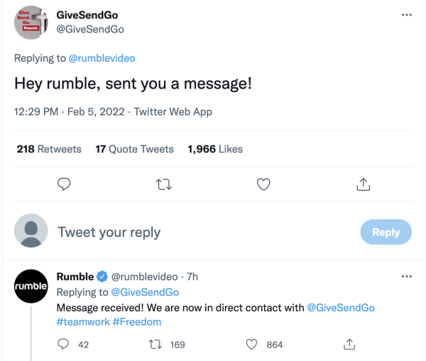 Rumble reached out to GiveSendMe and GiveSendMe accepted their assistance!