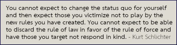 Well said Kate. I agree 100%! The left changes the rules to gain an advantage. They think they can tilt the playing field and there will be no consequences. Then it boomerangs right back – it might take a while, but it does.