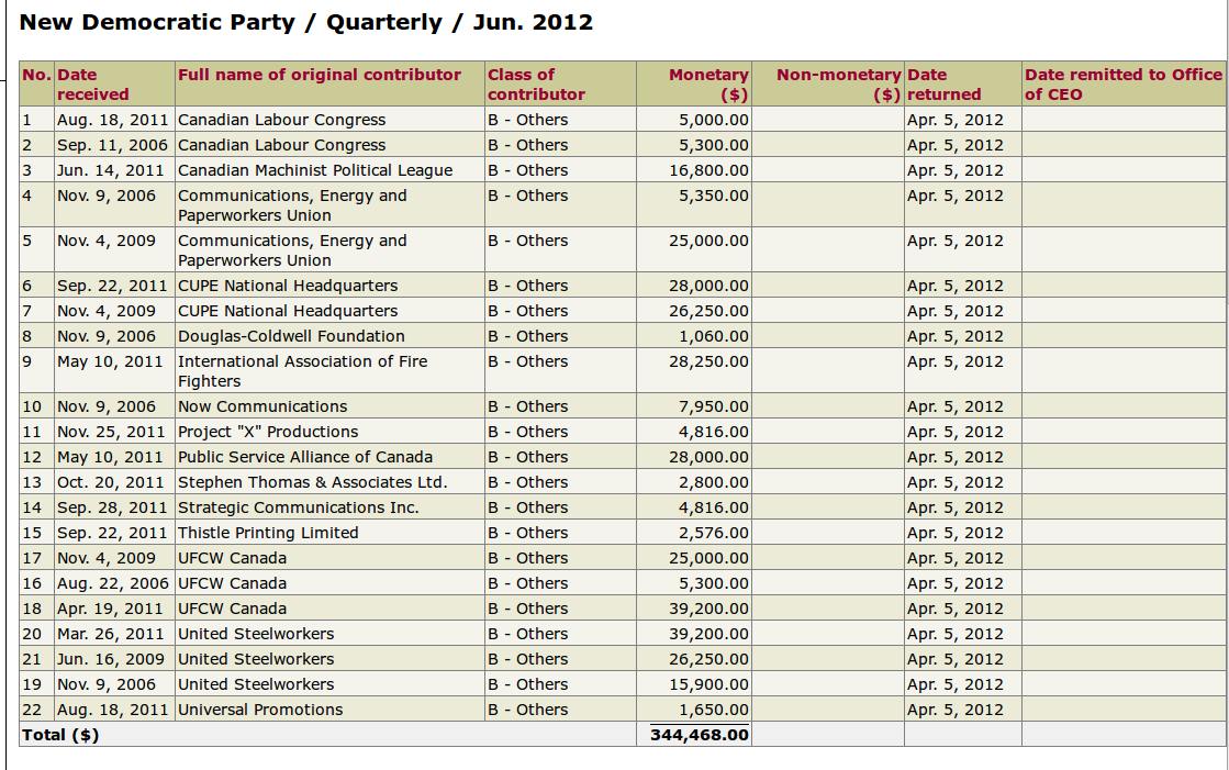 1. The NDP got a 340000 interest-free loan that they used during the last election.