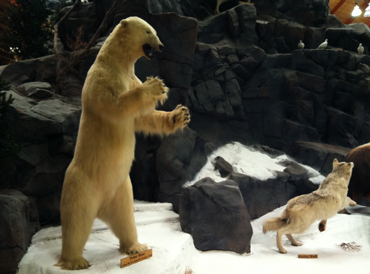 most people don’t realize how large a polar bear actually is…cabela’s sports outfitters have displays indicating their immense size.