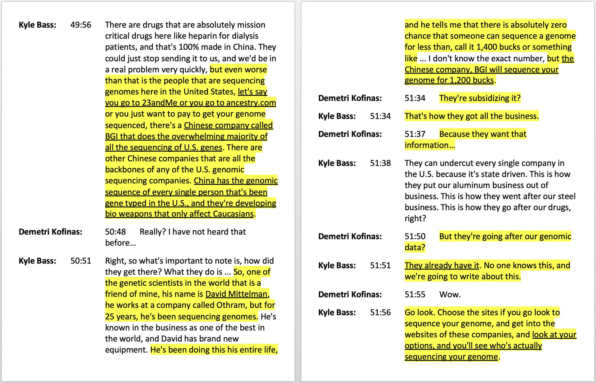 10. I work in the business (in the SF Bay Area) and can tell you categorically that this is not true. Yes, BGI is a big Chinese player in this space, but they compete with US genetic testing companies, they are not a supplier to them.