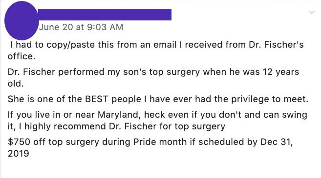 It is well known that the fastest way to get a parent on board with this delusion is to tell the parent that if they don’t have this surgery that the child is going to kill themselves.
