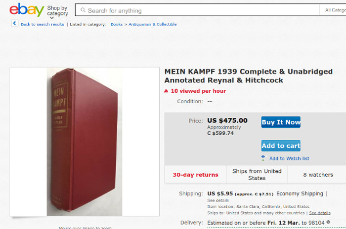 I saw the Wall Street Journal article with the same quote in it, and the fact that Mein Kampf is still available pretty much jumped out at me. They’re not even good at this.