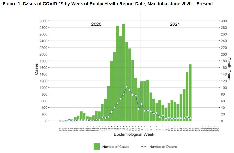 We are getting close to ICU capacity, that is the concern. If that number was lower the health orders would be different. Manitoba is only averaging 12k vaccine doses per day. Should be able to do 25k+. But it is consistent, we are at over 60% of all adults receiving one dose.