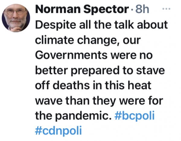 It is stinking hot here, we have baths and cold water taps. That’s the answer, not getting Premier Horgan to hold our hands through the worst of it. This seemed to be his response too until the worrywarts called him on it.