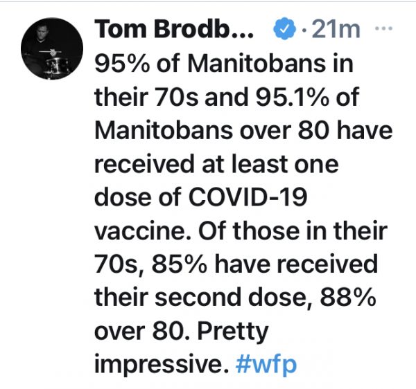 “Angry Dad” Pallister is unlikely to consider much more than a slight easing of the restrictions even with the collapse in numbers. I noticed today that CJOB/Global posted a headline that Manitoba had 145 Covid cases….over two days. Is this the start of a trend?