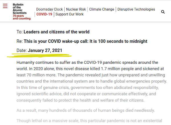 Wait, wasn’t the climate doomsday clock at 11:57? Will these clocks begin to spiral around each other like black holes?