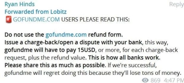 So, if you have donated via GoFundMe, please contact your bank and dispute the charge to your credit card or bank account.