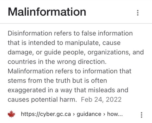 Well, you all must admit, the government sure knows what malinformation, disinformation and misinformation is, gee, they have a great horde of expertise on all of that crap. Our problem is they will use it to malinform the gullible public to their advantage, not the publics. My preference is they let me make my own decisions about what is true and what is not, but of course, I don’t get a vote on that. If they don’t like the “narrative, then they want to control it by filtering in what they think is their truth, and fogging out what they think is malinformation, by using misinformation and disinformation to do it. funny how that works huh.