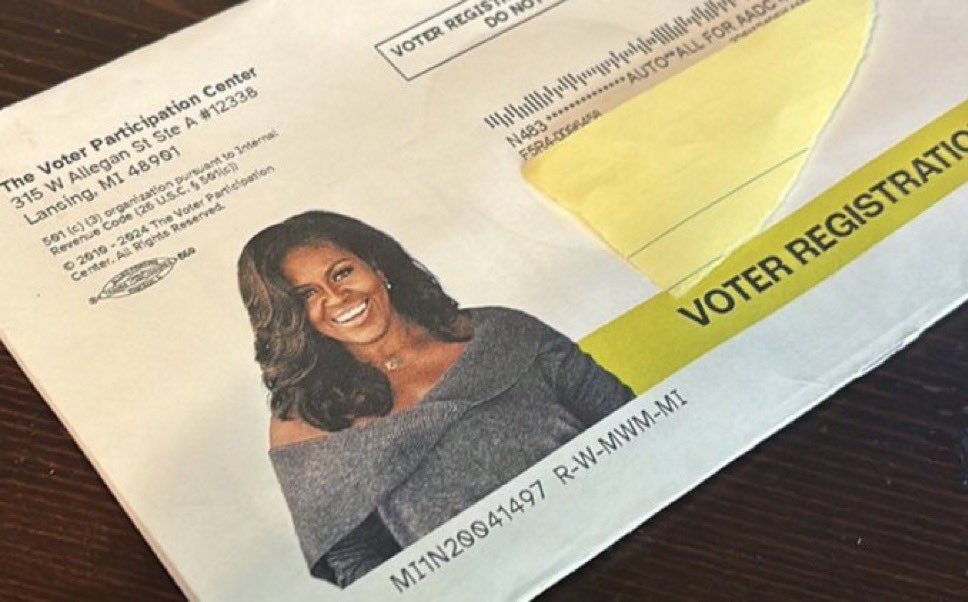 Annnnnnd … right on cue … Michelle Obama’s picture on the cover of MI voter registration pamphlet …