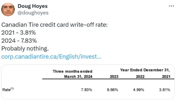 It’s hard to say whether CT’s troubles are because existing customers are having a harder time making their payments, or CT has been marketing their cards too aggressively. Based on how many times they have tried to get me to sign up, I suspect it’s more the latter than the former.