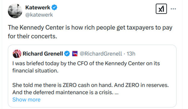 I’m not interested in underwriting the performing arts or other such events in the nation’s capital or anywhere else. Art like beauty is in the eye of the beholder. IMO 99% of Kennedy Center performances suck.