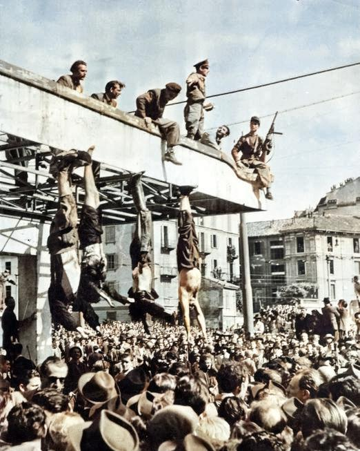 Mussolini was killed and hung from a lamppost upside down along with his most current mistress.