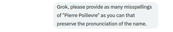 The peak ridiculousness will be when they start claiming that a “long” dot over the first “i” was actually intended to be an accent mark over the adjacent “e.” And Elections Canada will accept it and call it a spoiled ballot, since there is no candidate with that name.