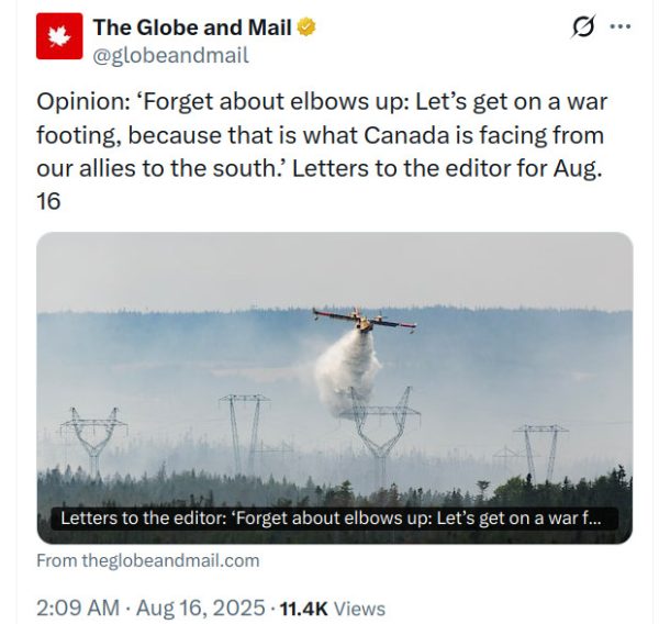 https://www.theglobeandmail.com/opinion/article-super-scooper-plane-waterbomb-wildfire/#comments. Yes, a cartoon, drawing attention to Canada’s history of military aircraft production. It takes a fairly dim view of Canada’s record in that regard; but seeks salvation through building the super scooper aircraft which is peaceful and very likely to be globally appreciated.