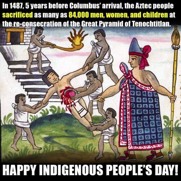 I will be celebrating indigenous peoples day by sleeping in the dirt tonight. I will kill a squirrel for dinner, and paint my face before slaughtering the neighbors family and raping their daughters. And then I will recount the whole affair to the story-keepers as we have no written language … maybe I’ll draw some pictures of my heroism.
