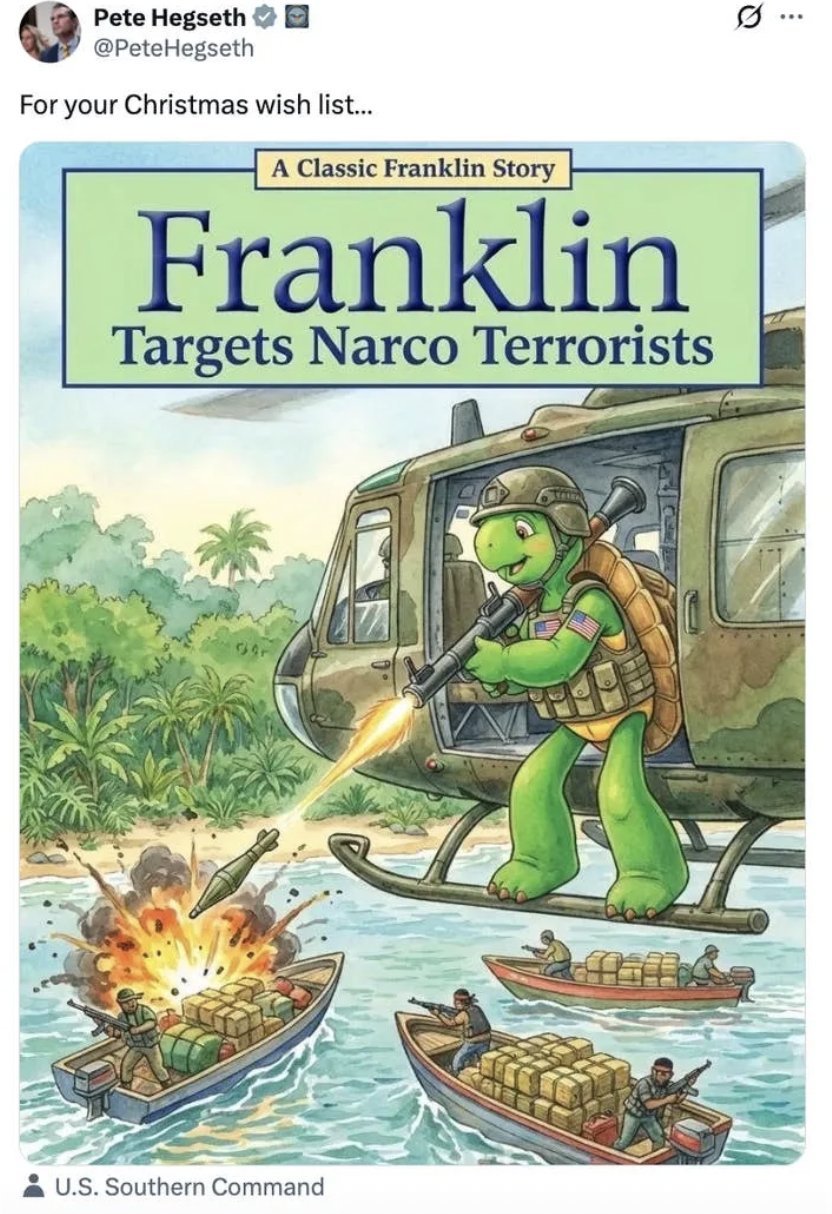 National Post: The Canadian publisher of the Franklin the Turtle children’s book series condemned U.S. Secretary of Defence Pete Hegseth’s use of the normally friendly anthropomorphic animal’s image in a “violent” meme posted to social media.
