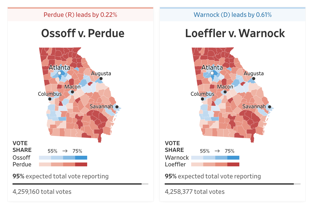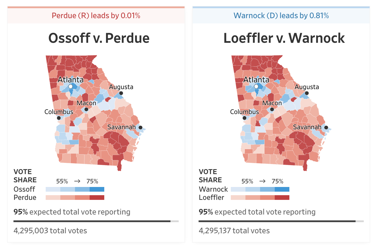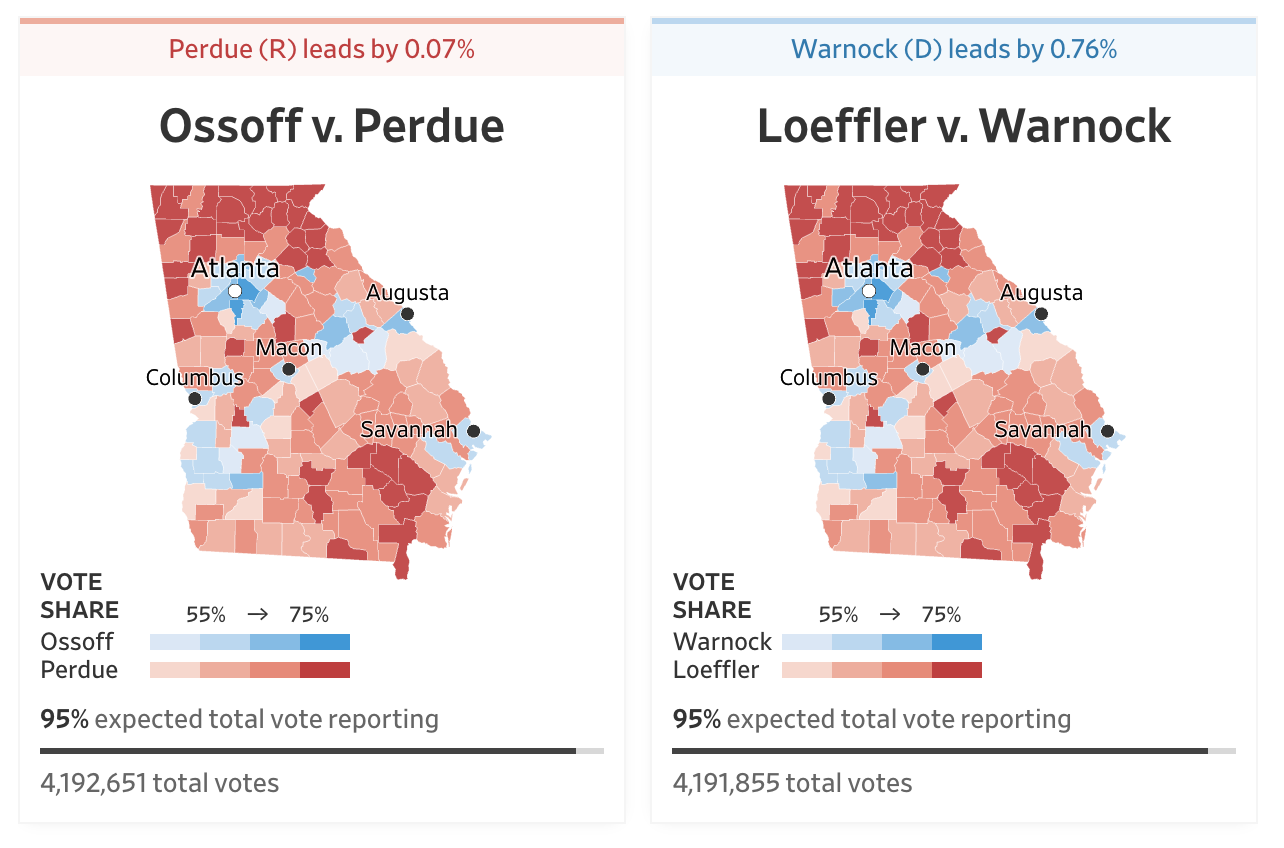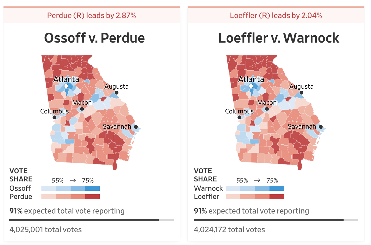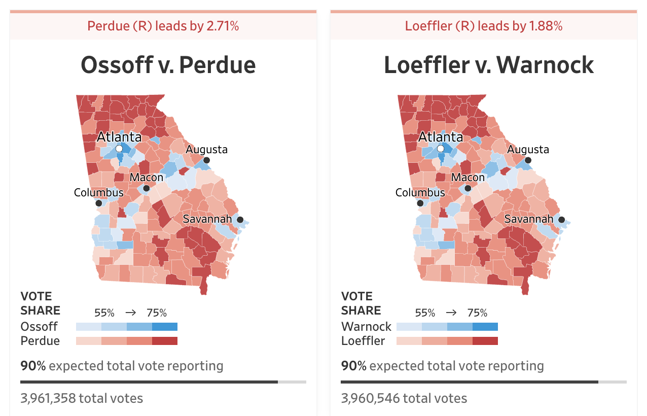Latest Georgia Election Results – Let’s see if there’s another “middle of the night freeze”, followed by a sudden change of fortune for the Democrats.