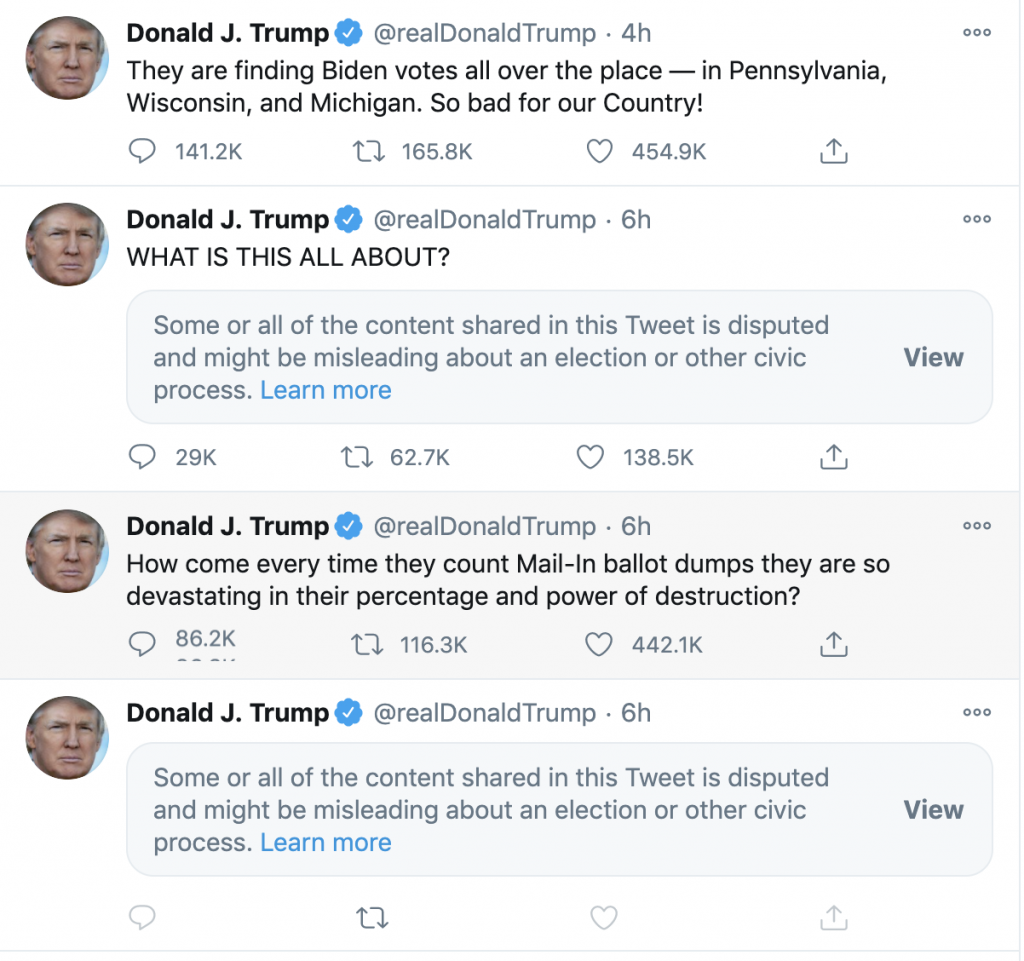 Trump responds, as only Trump would. Like most people, I don’t believe they’re going to win this one — too many forces are against them. Do I think the election was taken by fraud? Probability high.