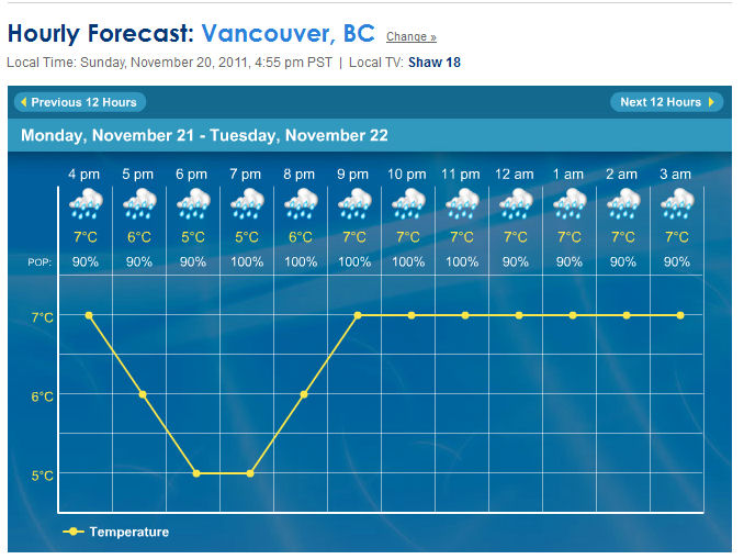 Monday, November 21, 2011 – 4pm onwards: An endless stream of wet, miserable weather is forecast: