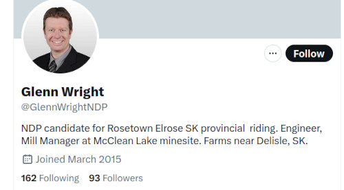 Well, I looked for words such as “NDP candidate for Rosetown Elrose SK provincial riding”, and I couldn’t find that either.