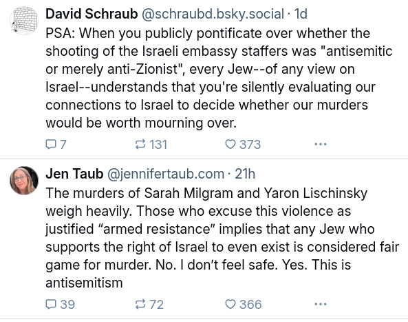 Jews on BlueSky seem disturbed that their leftist fellow travellers are debating what degree of support for Israel justifies their murder.