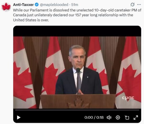Chinese News (posting under 大中生活 on WeChat) releases a glowing endorsement of Mark Carney. It’s described as being headquartered in Toronto, with a Chinese Canadian audience of 800,000.