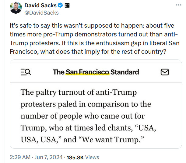 What do these people imagine will happen now? Where do they believe Trump voters will go? Do they think the anger that drove his campaign in the first place will evaporate? Do they realize Trump surged ahead in all the battleground states during this trial? Don’t they see where this is headed?