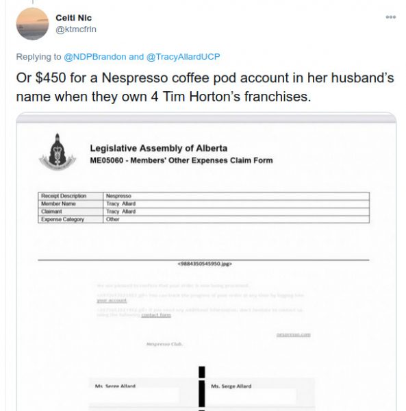 From the land of outdoor rink swat teams: Why are Albertans paying $300 for @TracyAllardUCP to have her vehicle shampooed?