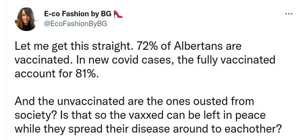 Today in Manitoba 947 new cases identified, 143 are in individuals who were not fully vaccinated. In other words 85% of the cases were fully vaxxed.