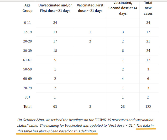 The problem here should be self-evident: the unvaccinated and newly-vaccinated do not have the same immune status — that’s just a statistical and immunological fact. It’s inexplicable that they’ve been grouped as one. They are not the same, and data from the two groups should not be combined. Why not? Because, if a recent vaccination promotes a behavioral or immune response that makes newly vaccinated more susceptible to infection, (as discussed here), that data is being suppressed.